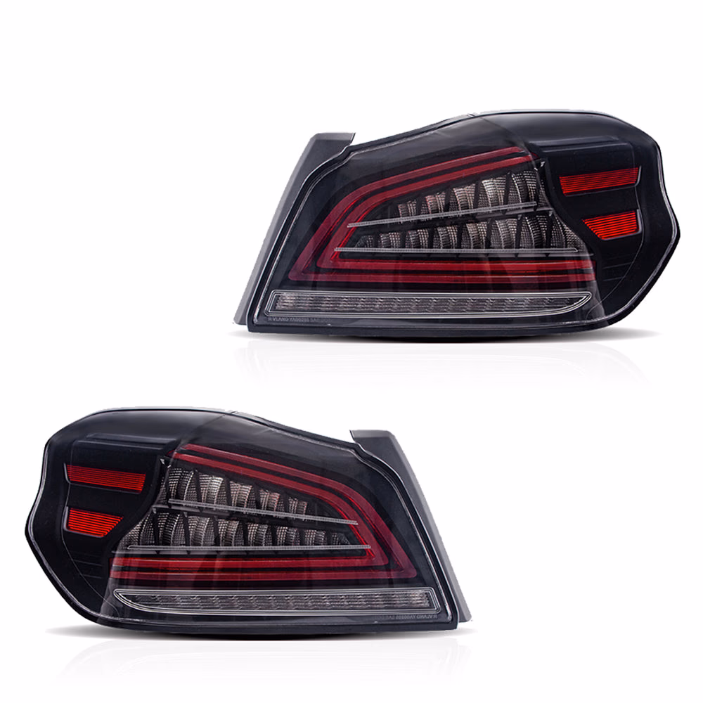 OEM-stiilis plug-and-play LED tagatulede uuendus Subaru WRX ja WRX STI (VA) 2015–2021. Täis LED seisutuled, pidurid ja tagurdus koos merevaigukollaste järjestik-suunatuledega. Valikus punane, selge ja suitsune variant.