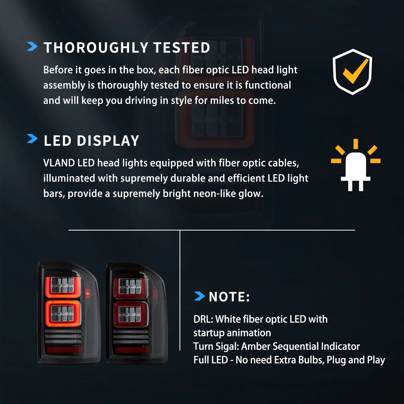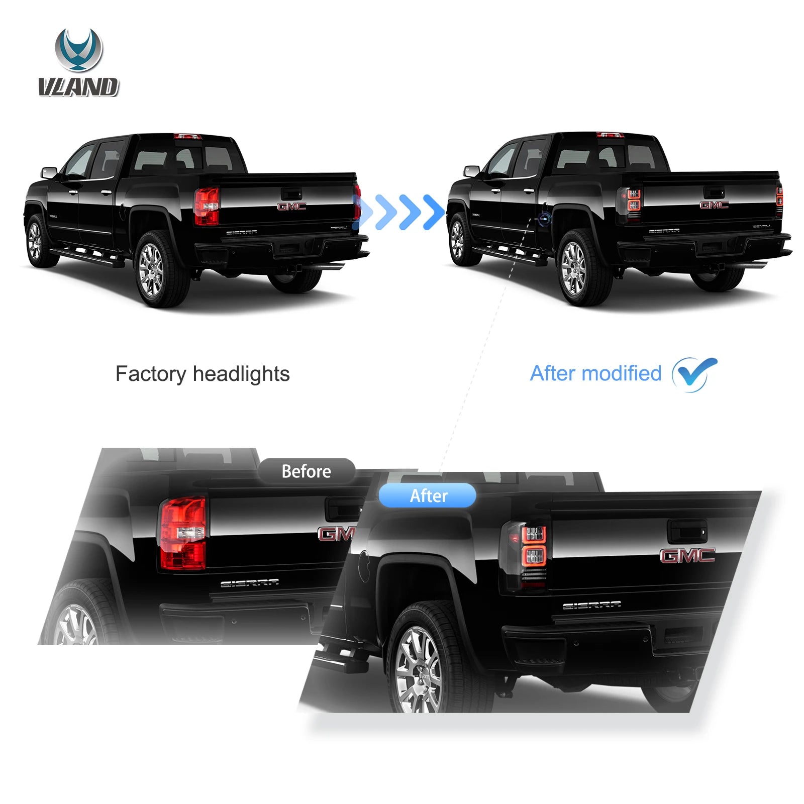 Feux arrière LED VLAND — GMC Sierra 1500 (2014–2018) • 2500HD/3500HD SRW (2015–2019)