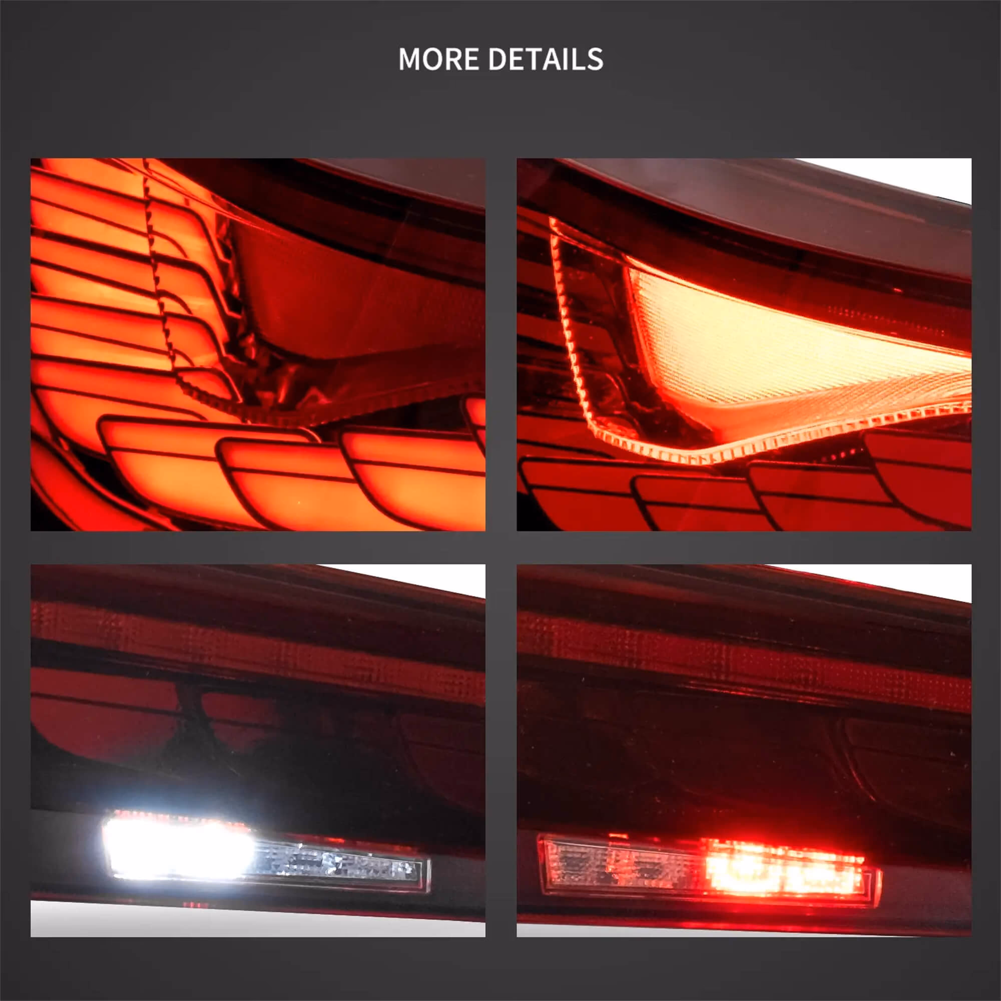 - Mise à niveau tout LED : position (OLED rouge), frein (LED rouge), marche arrière (blanc vif), antibrouillard (LED rouge), clignotant (LED ambre, séquentiel).