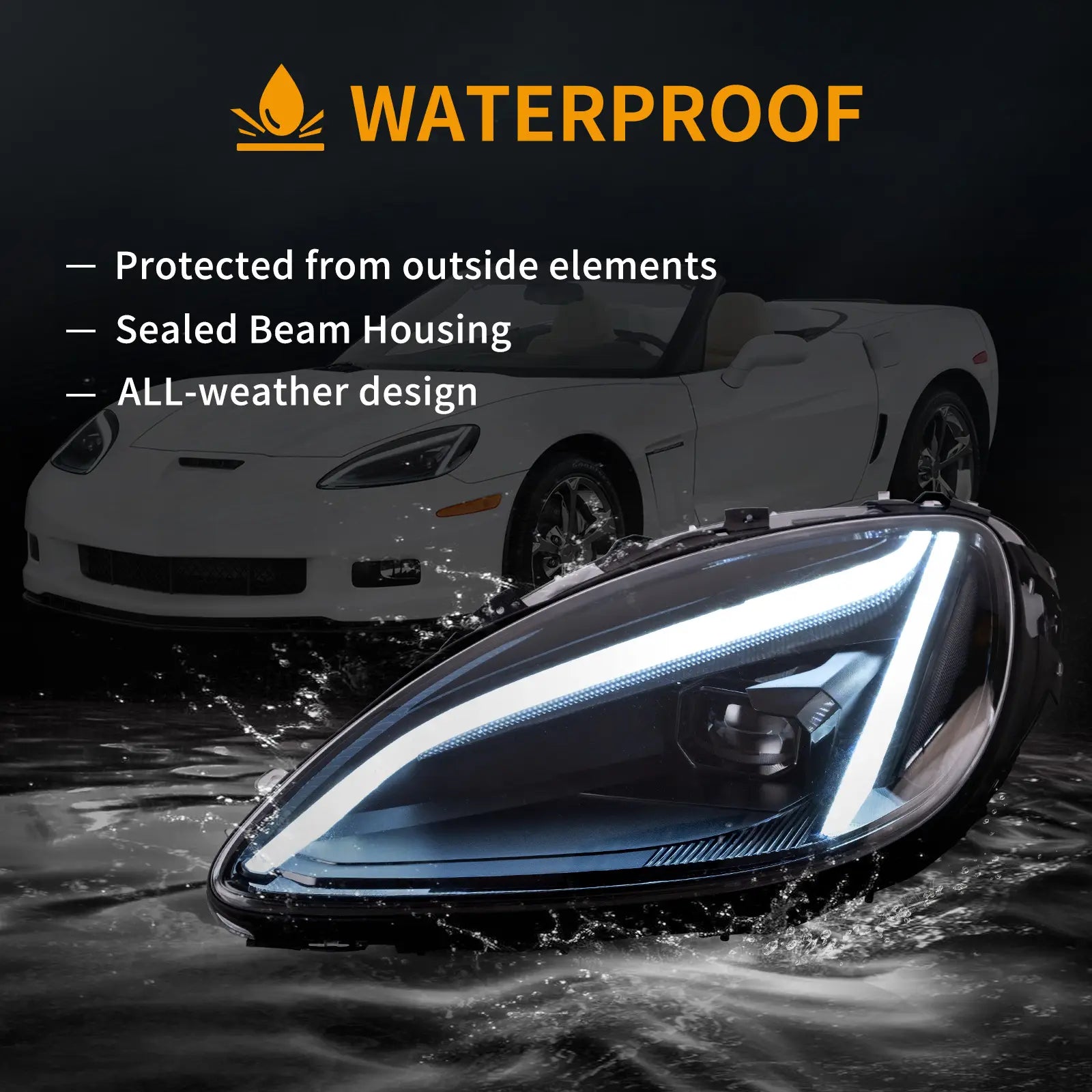 Projecteurs LED style C8 VLAND — Chevrolet Corvette C6 (spéc. US, 2005–2013)