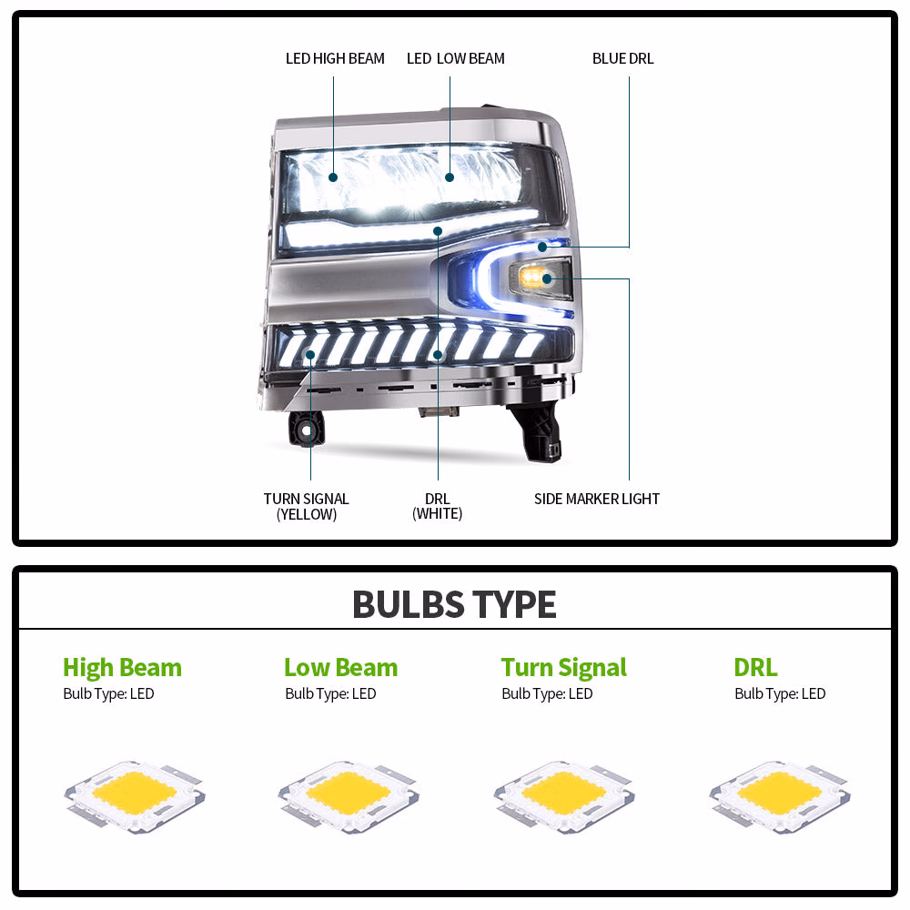 Projecteurs Full LED VLAND — Chevrolet Silverado 1500 (2015–2018)