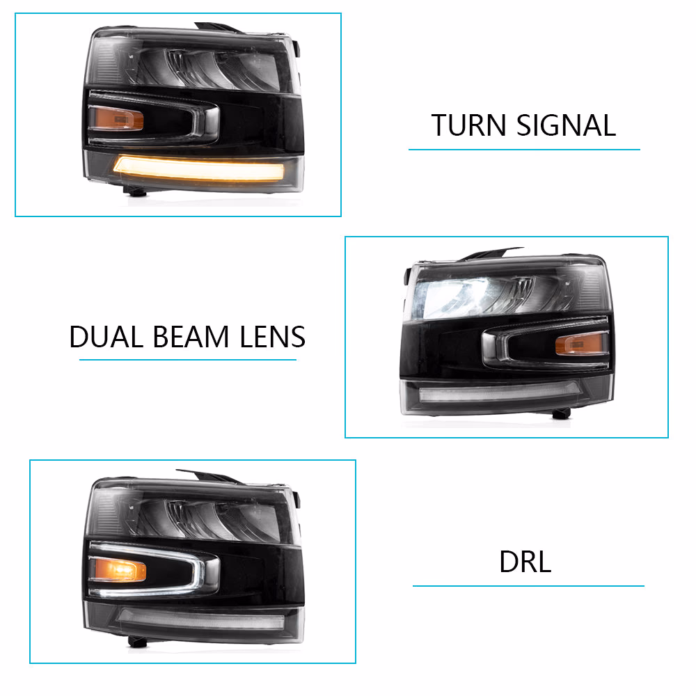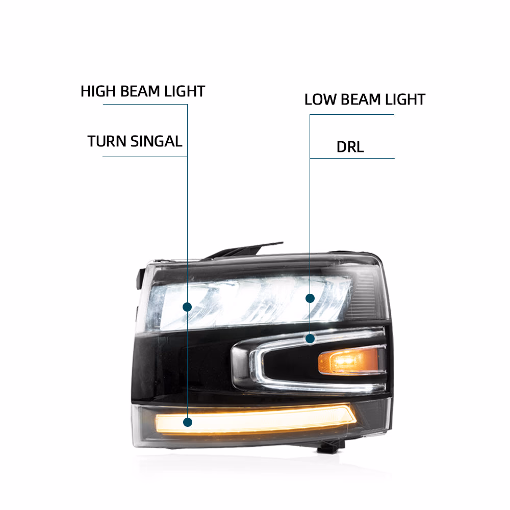 Projecteurs Full LED VLAND — Chevrolet Silverado (2007–2014, nouvelle carrosserie)