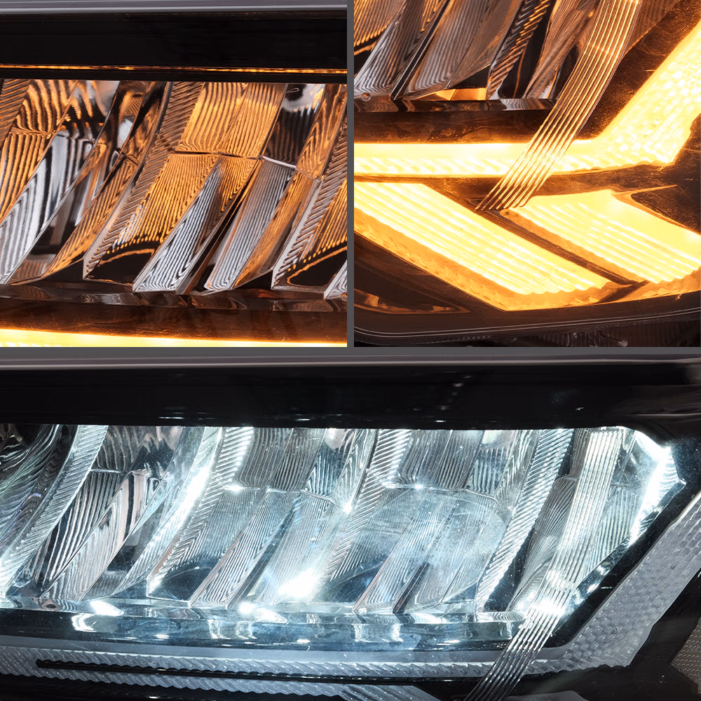 Mise à niveau de phares LED style OEM plug-and-play pour Toyota 4Runner 2014–2024 (N280). Feux de croisement/route 100% LED (bols réflecteurs), DRL blancs avec animation de démarrage et clignotants ambre séquentiels. Configuration LHD.