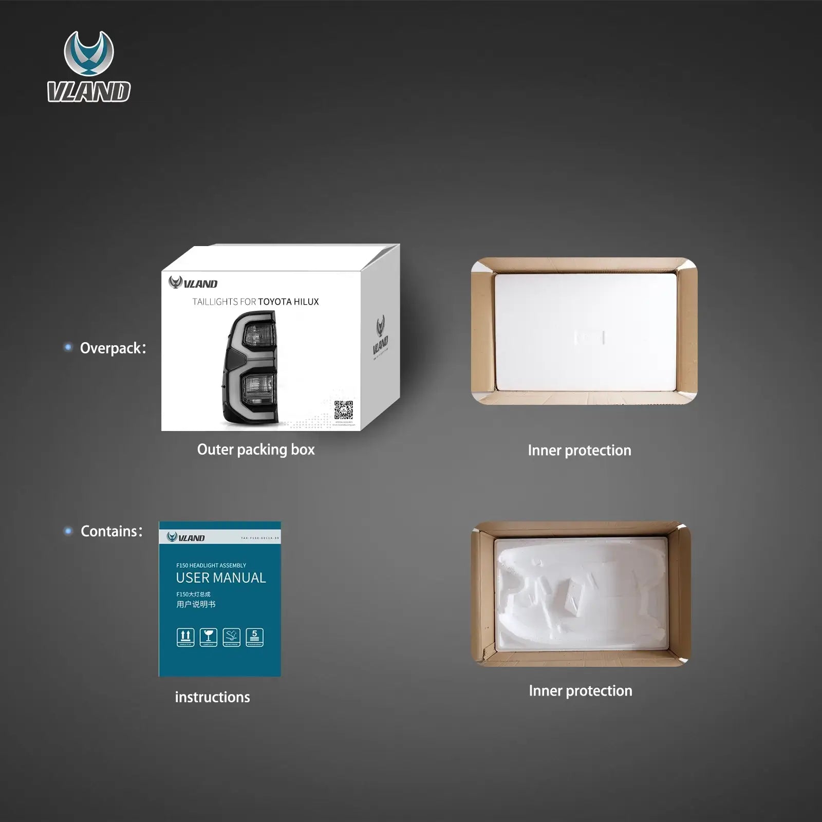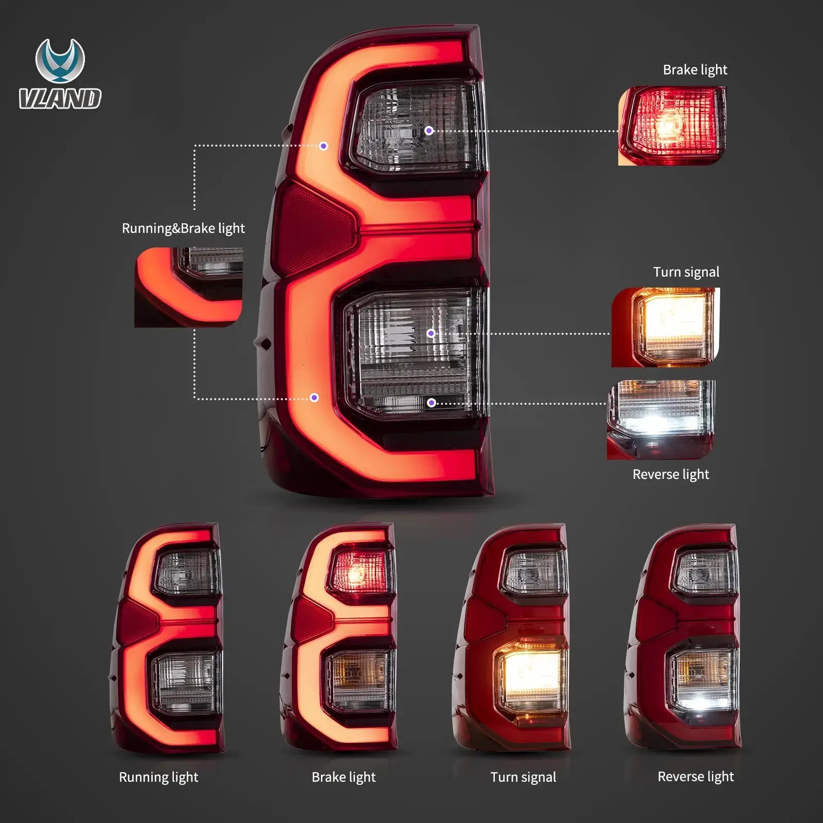 VLAND Toyota Hilux SR5 feux arrière 2015–2022 (8e gén. GUN125/GUN126R) — Rouge clair / Fumé