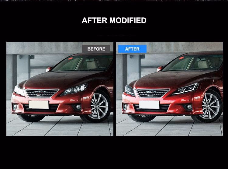 Ensemble de phares style OEM plug-and-play pour Toyota Mark X / Reiz 2009–2013 (X130, pré-restylage). Versions LHD et RHD disponibles.