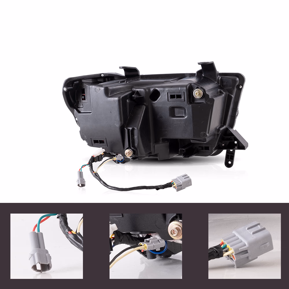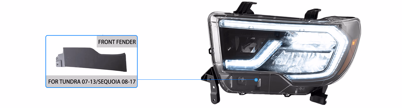 Mise à niveau des phares au style OEM pour Toyota Tundra 2007–2013 (2e gén., XK50) et Toyota Sequoia 2008–2021 (2e gén., XK60, SR5). Plug-and-play avec connecteurs et points de fixation d’origine. Faisceaux croisement/route LED à réflecteur, DRL LED blanc et clignotants ambre séquentiels.