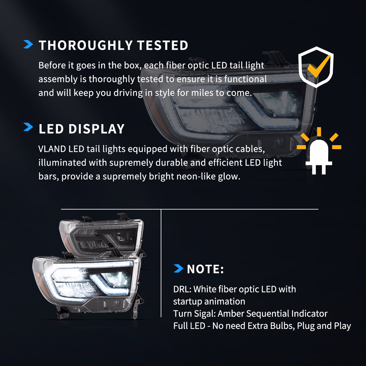 VLAND Toyota Tundra / Sequoia phares LED 2007–2013 XK50 • 2008–2021 XK60 — style OEM, plug-and-play