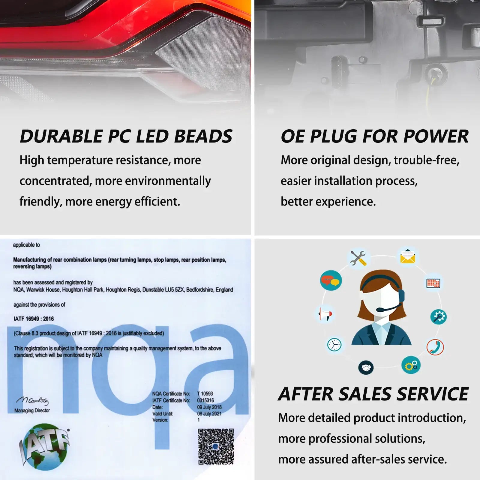 Aggiornamento posteriore Full LED con animazione di benvenuto/avvio, indicatori ambra sequenziali e retromarcia bianca brillante — plug & play sui connettori OEM. Certificati ECE E-mark e DOT/SAE.