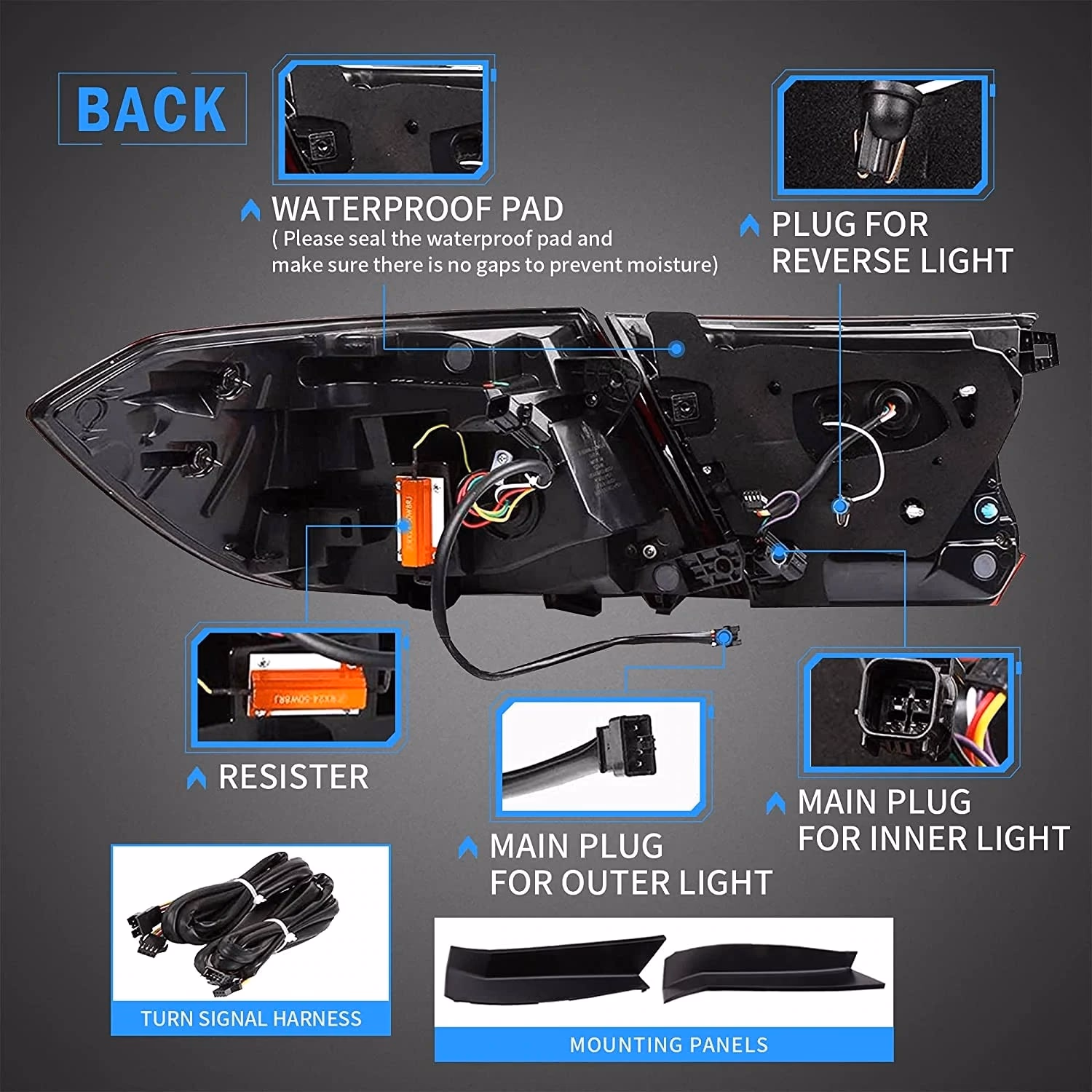 - Full LED — posizione, freno, retromarcia e indicatori ambra sequenziali; nessuna lampadina.