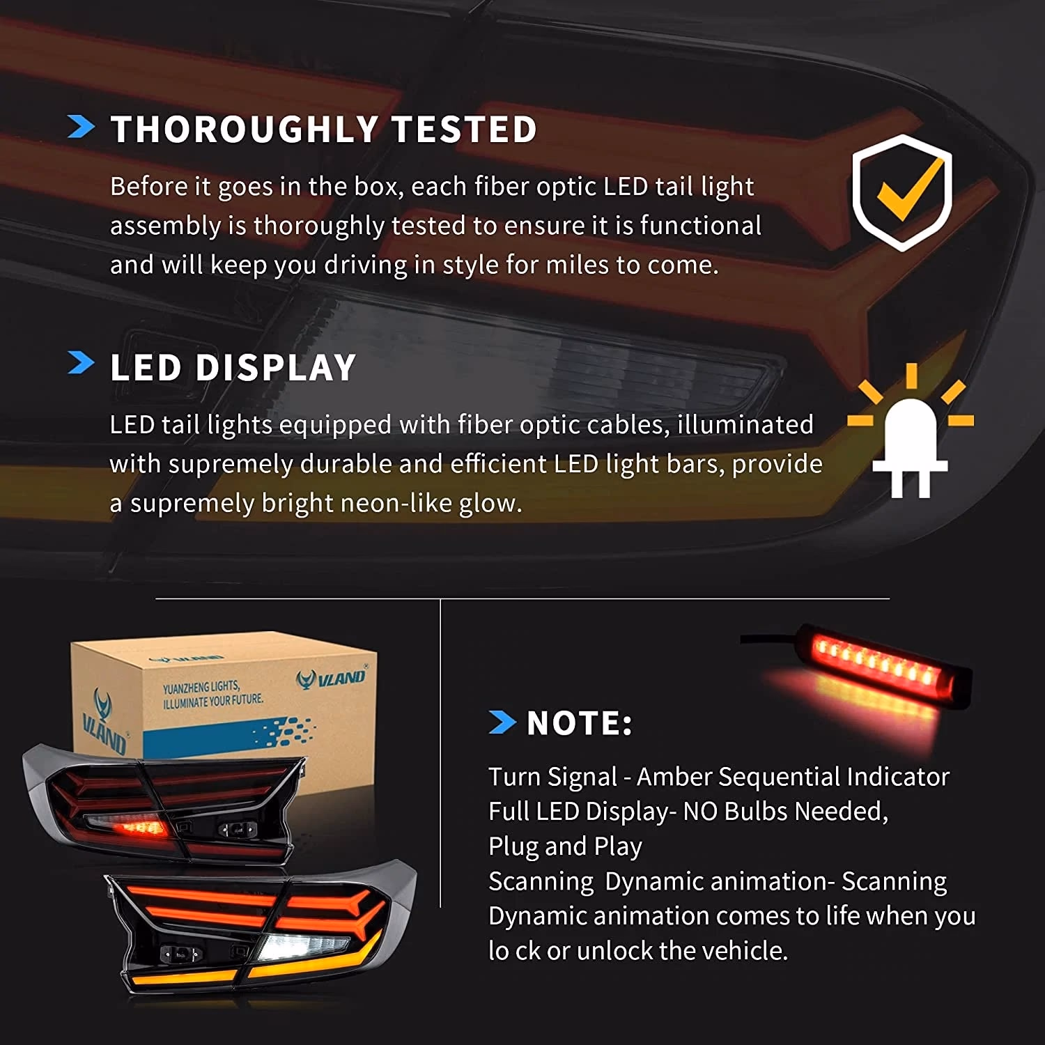 VLAND Honda Accord 10ª gen Berlina fanali posteriori LED — 2018–2021 Pre-Facelift (CV1/CV2/CV3, sequenziali)