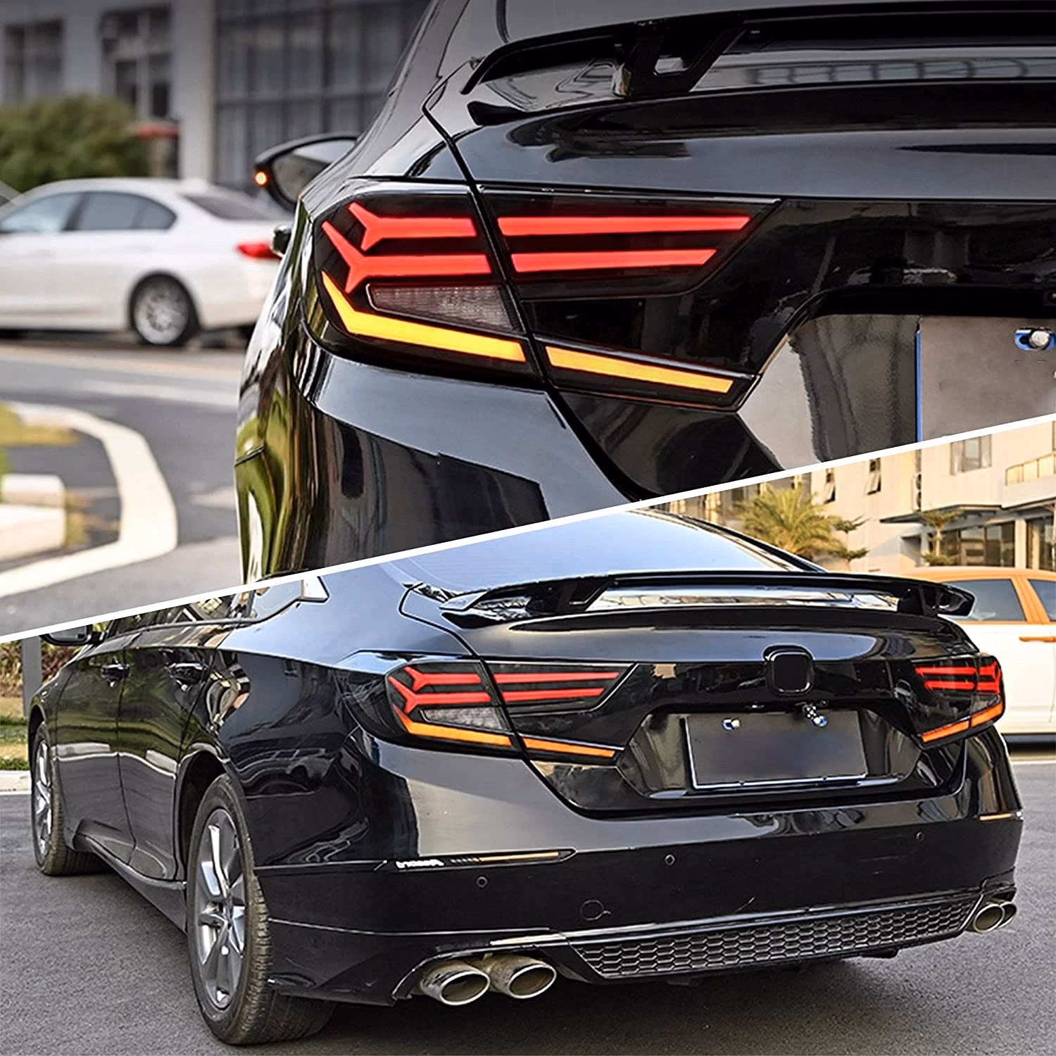 Fanali posteriori Full-LED plug-and-play per Accord 10ª gen (berlina): scegli lente fumata o rossa con LED posizione/freno/retromarcia e frecce ambra sequenziali. Si installano con gli stessi connettori OE.