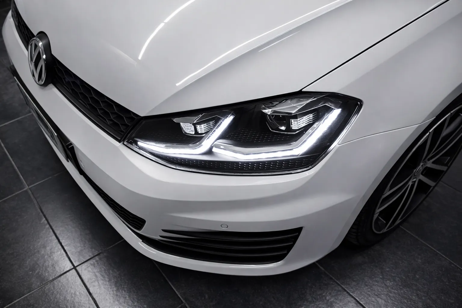 Pilnas priekinių žibintų konversijos komplektas, skirtas Volkswagen Golf Mk7 ir Mk7.5 (2012–2021). Gaunate pilnus LED artimųjų/toliųjų šviesų žibintus, ryškią baltą DRL juostą ir gintaro spalvos sekvencinius posūkių signalus. Sukurta kaip plug-and-play atnaujinimas tiek halogenas → pilni LED, tiek ksenonas → pilni LED konfigūracijoms (būtinai pasirinkite tinkamą versiją pagal savo automobilį). Žibintai sertifikuoti su ECE E-mark ir DOT/SAE žymėjimais.