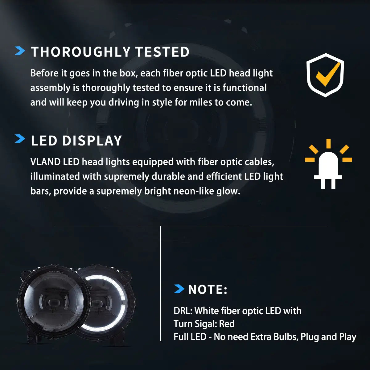 VLAND Jeep Wrangler JL/JLU & Gladiator JT LED priekšējie lukturi — 2018–2024 (saderīgi ar Rubicon, Full LED)