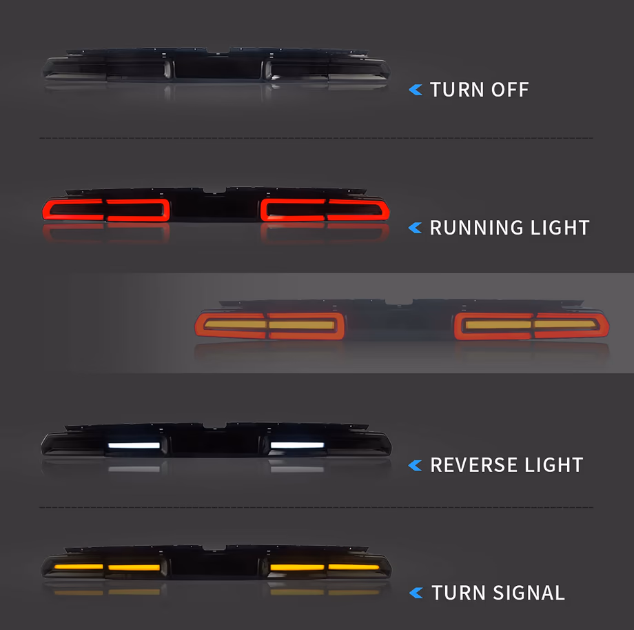 Kompletny upgrade przód & tył: reflektory z podwójnym projektorem i białym DRL oraz bursztynowymi sekwencyjnymi kierunkowskazami, a także tylne lampy Full-LED z sekwencyjnymi kierunkowskazami i jasnym białym światłem wstecznym — wszystko plug-and-play.