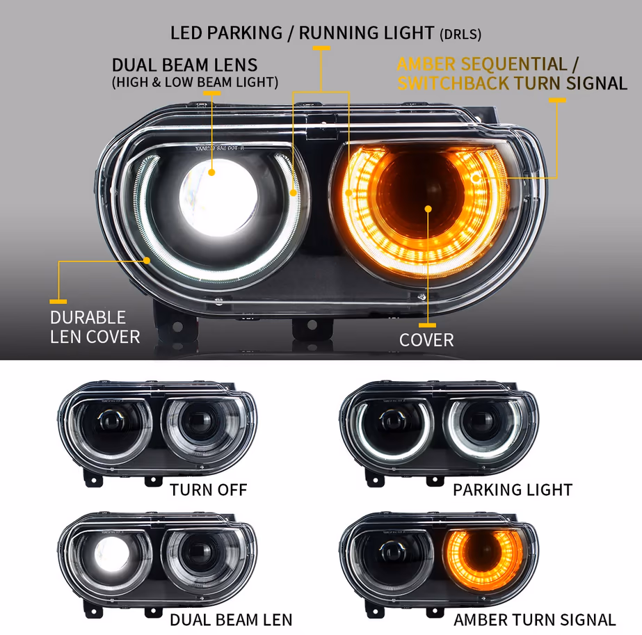 Zestaw VLAND Reflektory + Lampy tylne — Dodge Challenger (LC, 2008–2014 przed liftem)