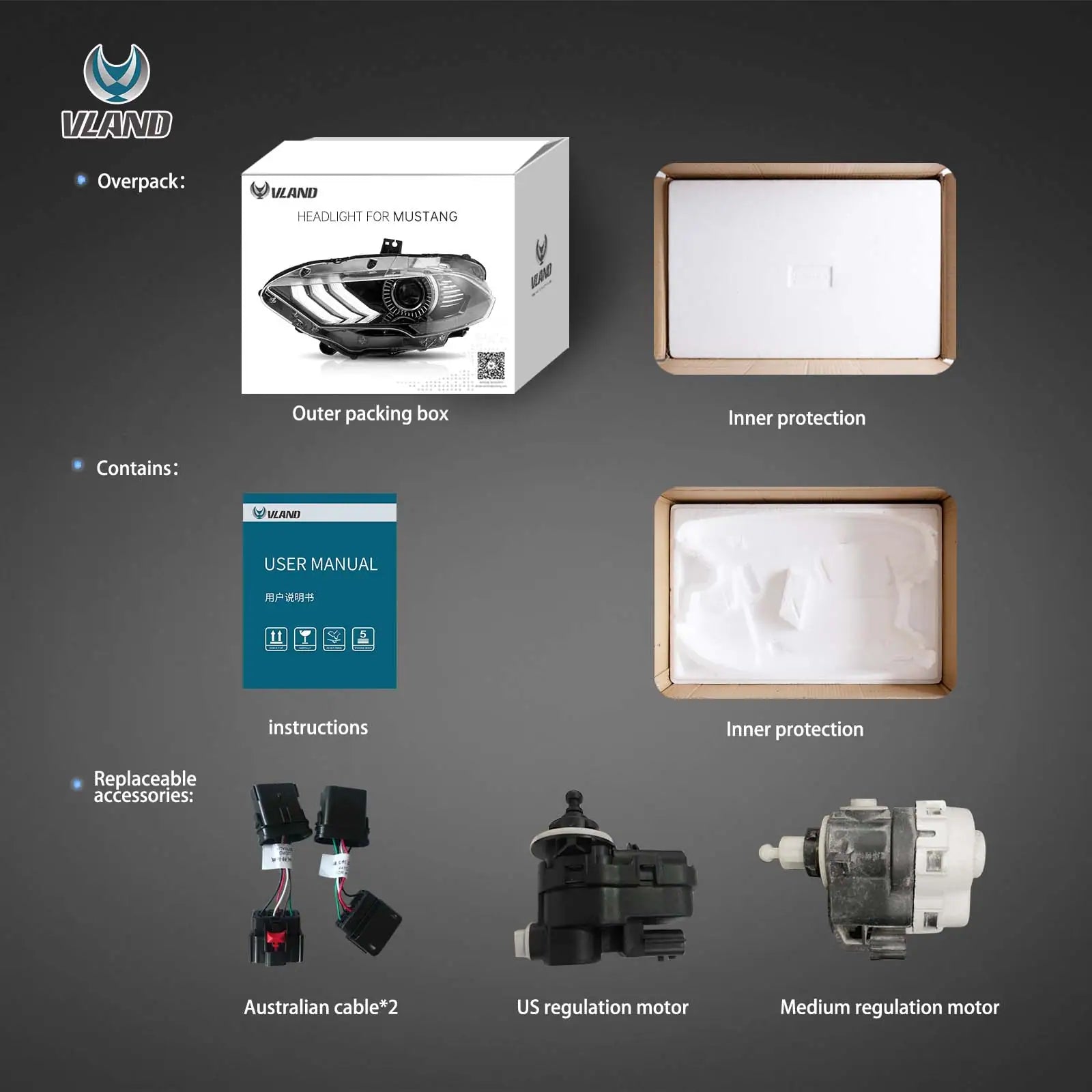 Bezpośredni zamiennik w stylu OE dla Mustanga VI (2018–2024). Pełny zestaw LED z wyraźnym bi-LED mijania/drogowe, białym DRL oraz animacją startową w stylu RGB. Plug-and-play z fabrycznymi złączami — bez żarówek.