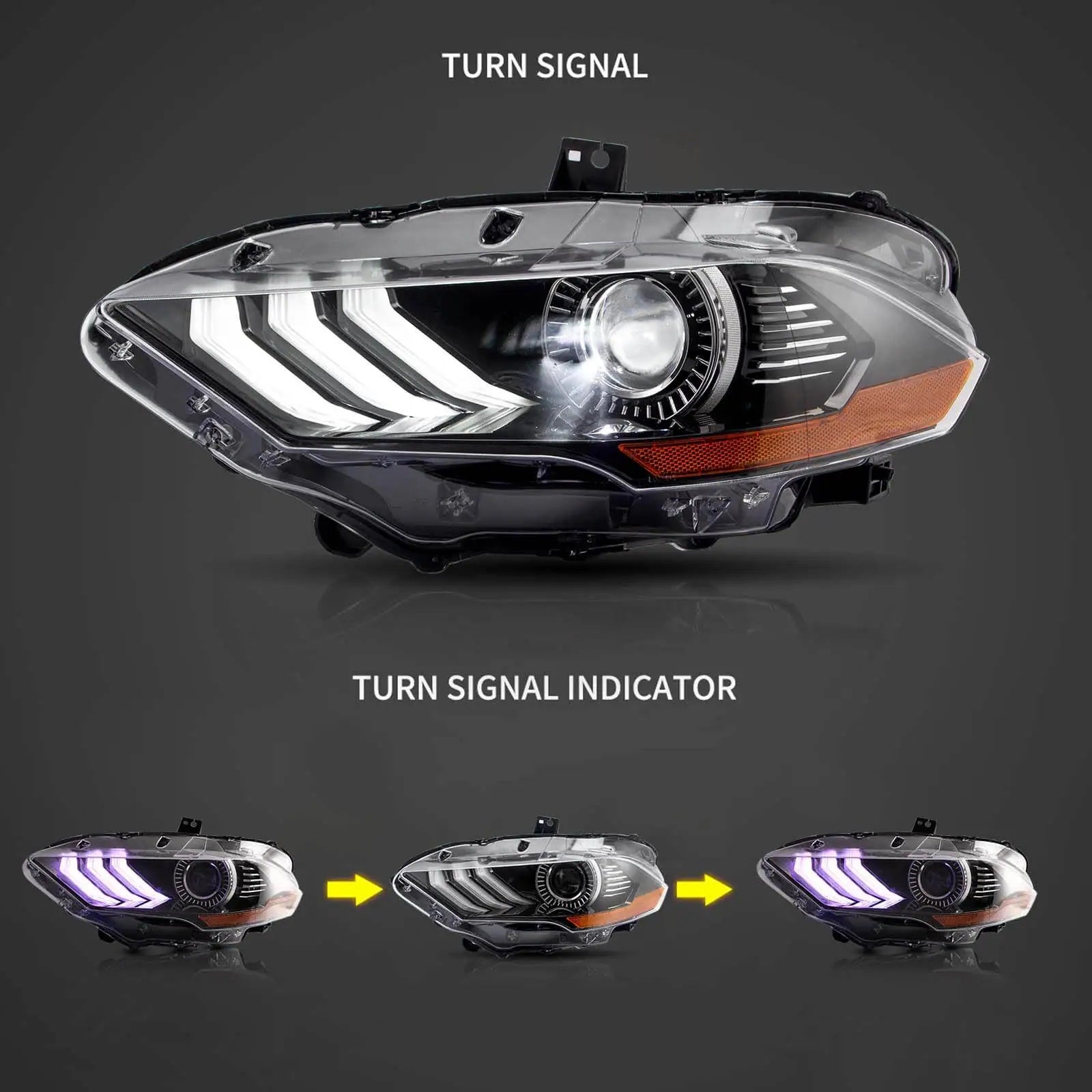 Ford Mustang (S550 Facelift) reflektory Full LED — bi-LED mijania/drogowe, białe DRL — plug-and-play (2018–2024)