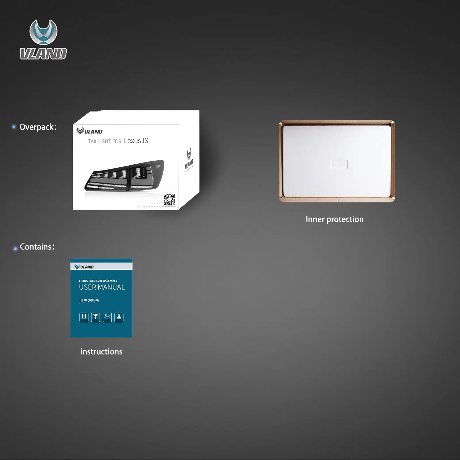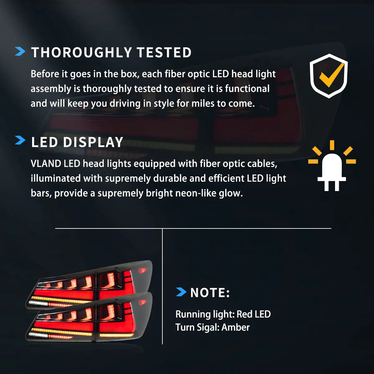 VLAND Lexus IS XE20 tylne lampy LED — 2005–2014 sedan (IS250/IS350/IS200d/IS220d/IS300/IS F) — Czerwony/Przezroczysty / Przyciemniane