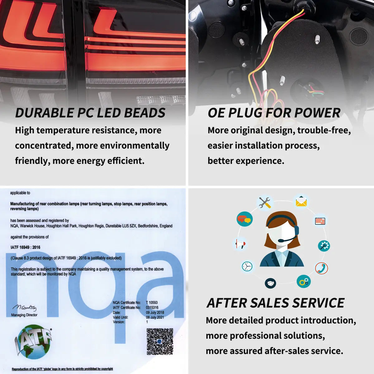 | Funkcje | LED pozycyjne, LED stop, LED wsteczny, LED tylna mgła (jeśli występuje), LED bursztynowy sekwencyjny kierunkowskaz |