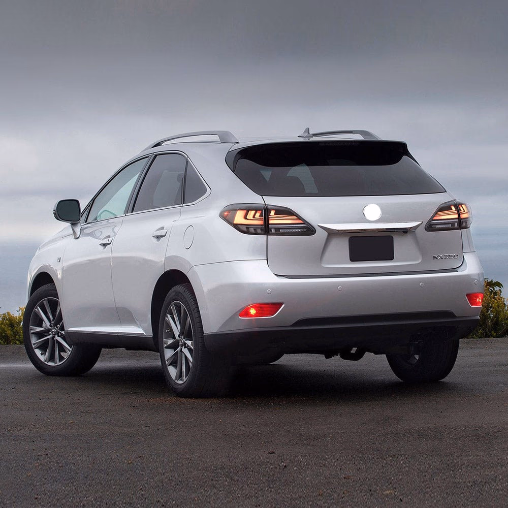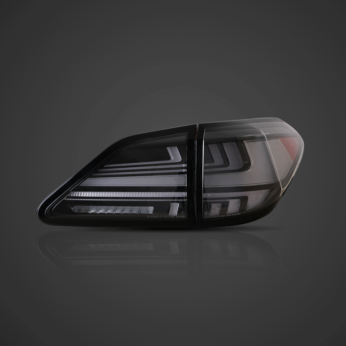 Bezpośrednie, w stylu OEM Pełne LED lampy tylne do trzeciej generacji Lexus RX (AL10, przed liftingiem). Jasne LED pozycyjne, stop, wsteczny i tylna mgła, a także bursztynowe sekwencyjne kierunkowskazy oraz animacja powitalna. Montaż plug-and-play na fabrycznych złączach. Wybierz soczewkę Przyciemnianą lub Przezroczystą.
