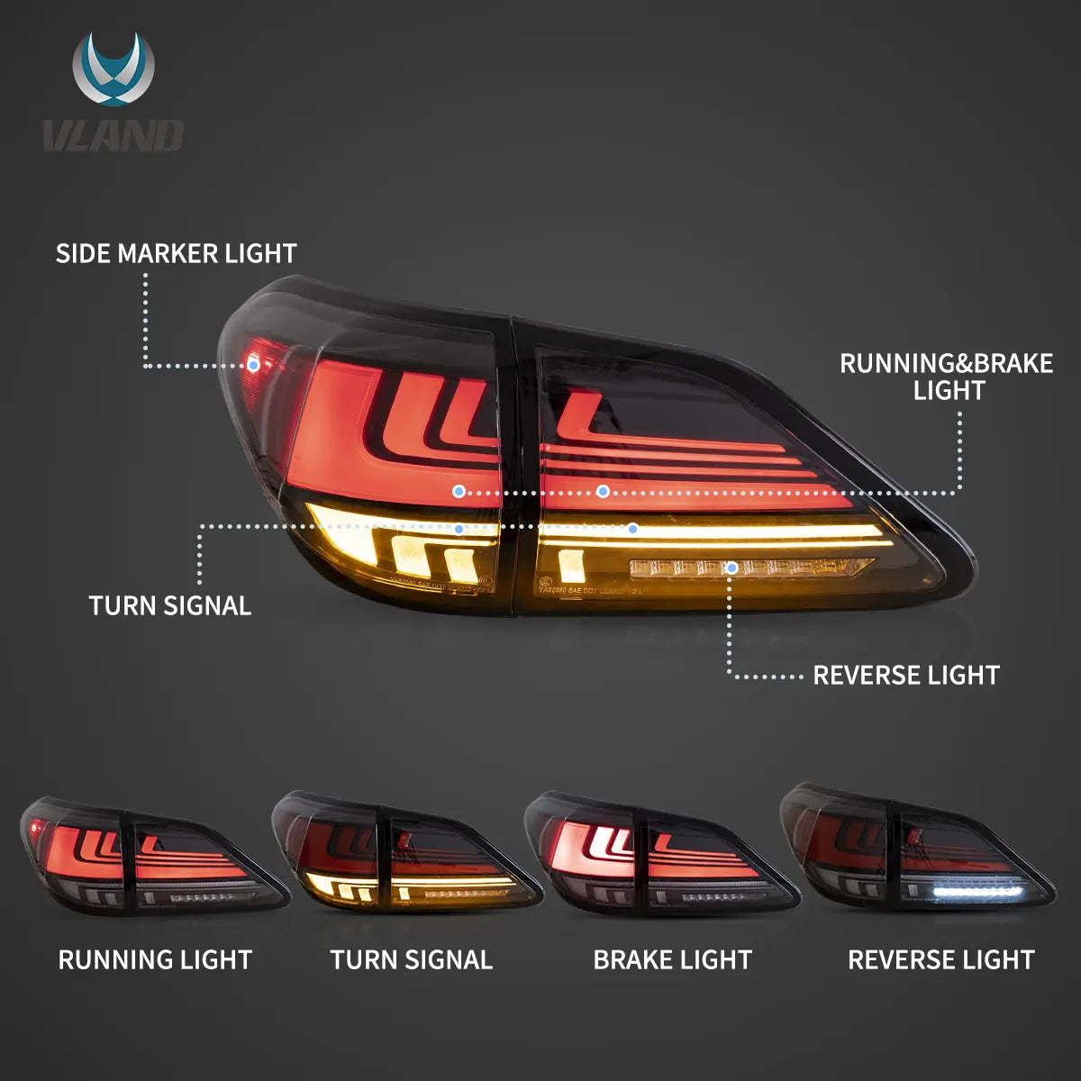VLAND Lexus RX tylne lampy LED — RX 350 / RX 450h (3. gen. AL10, przed liftingiem) 2009–2015 — Przyciemniane / Przezroczyste