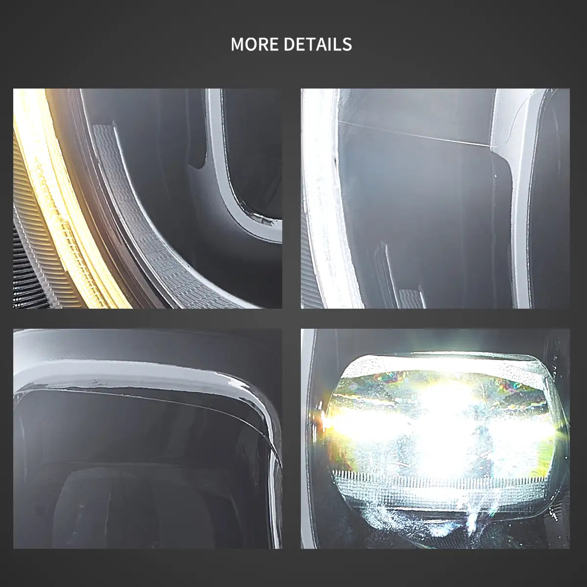 - Pełne LED mijania/drogowe — jasny, równy strumień i ostry cutoff.