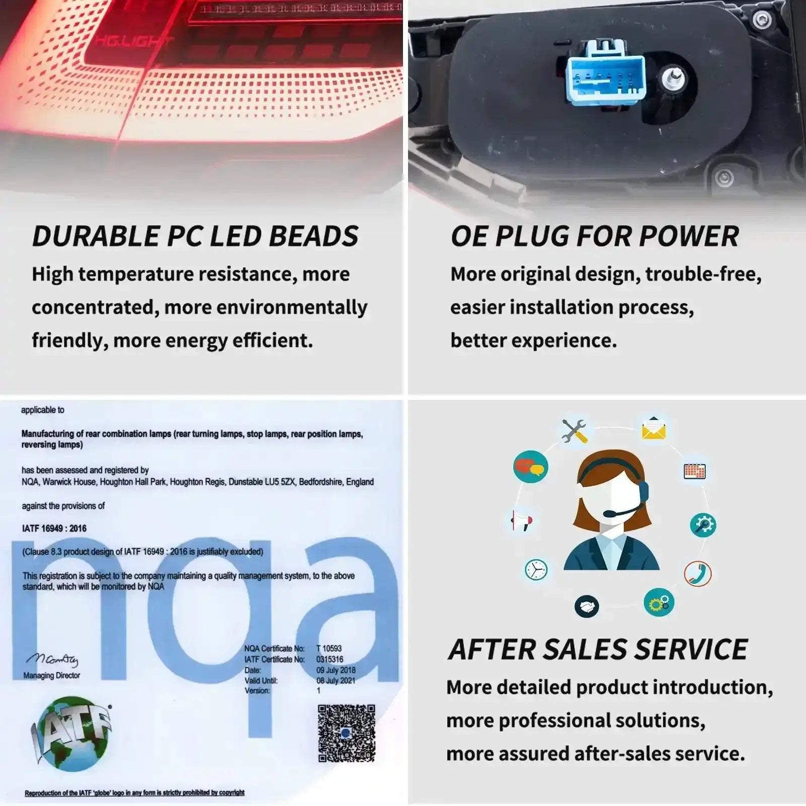 - Certyfikacja: ECE E-mark, DOT/SAE, CCC; produkcja wg IATF 16949 i ISO 9001.