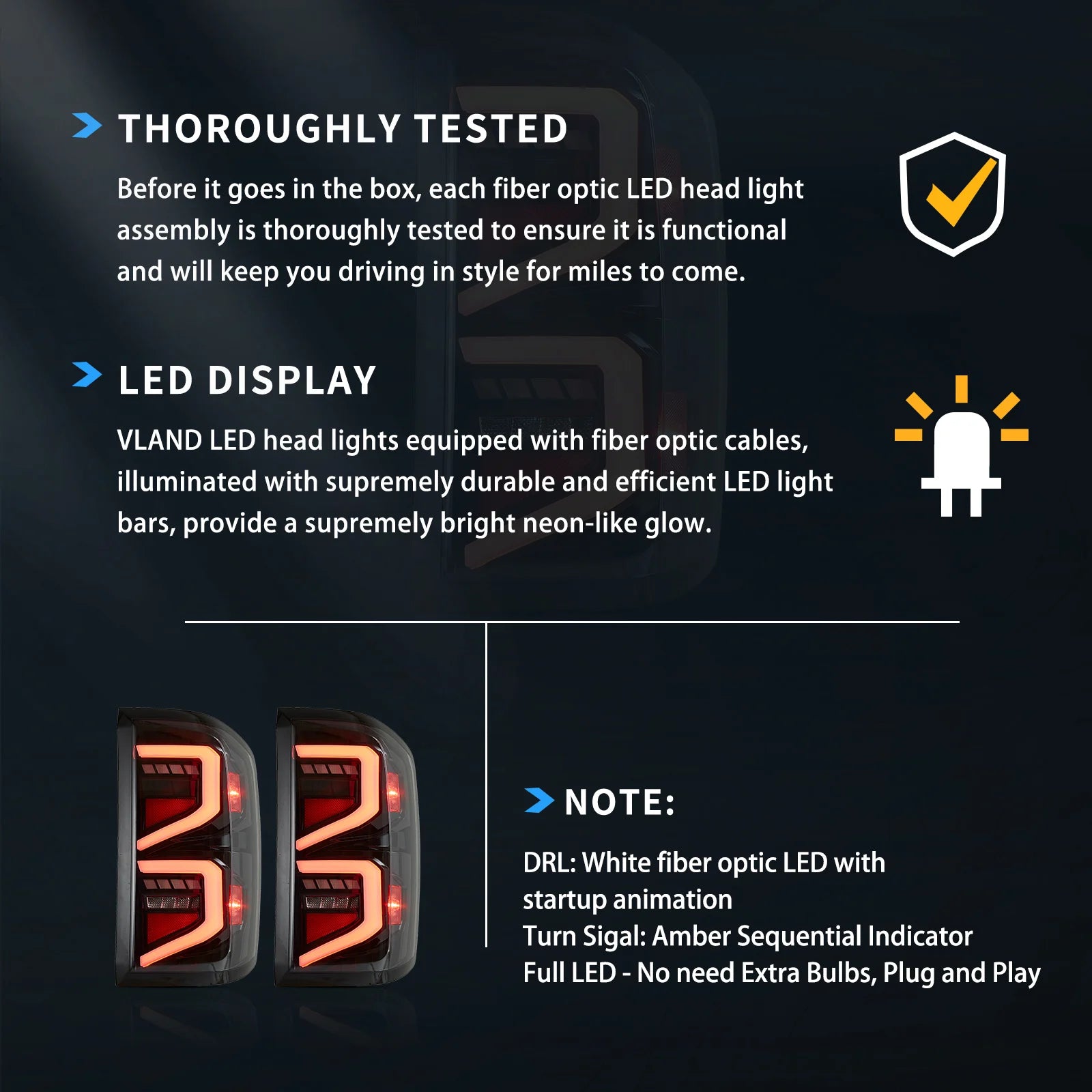 VLAND Full LED Tail Lights (Smoked) — Chevrolet Silverado 1500 (2014–2018) · 2500HD/3500HD (2015–2019)