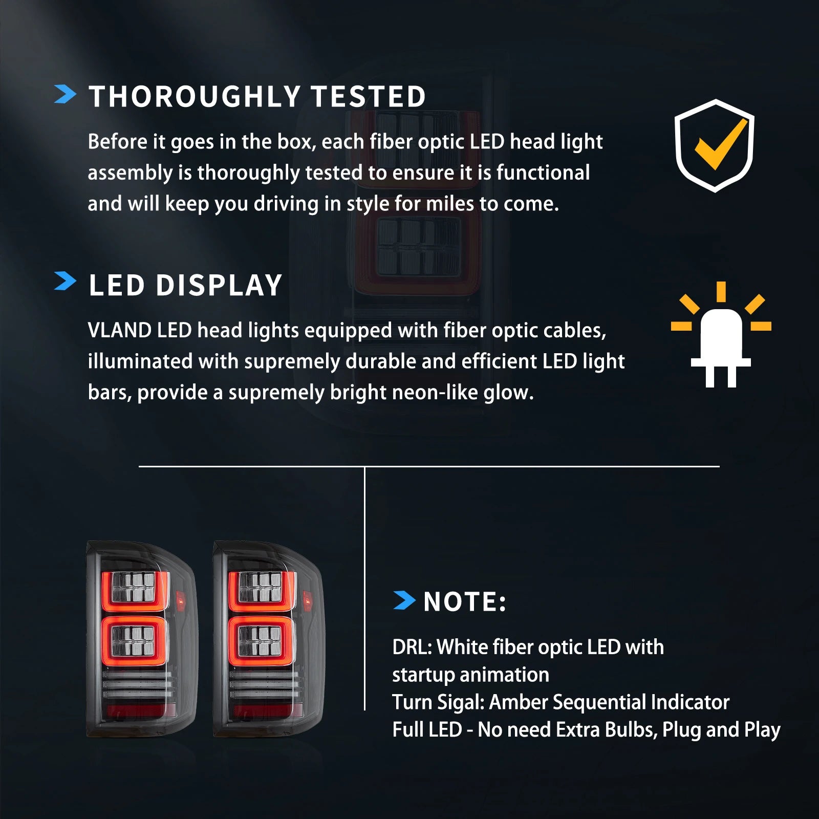 VLAND Full LED Tail Lights — Chevrolet Silverado 1500 (2014–2018) · 2500HD/3500HD (2015–2019)