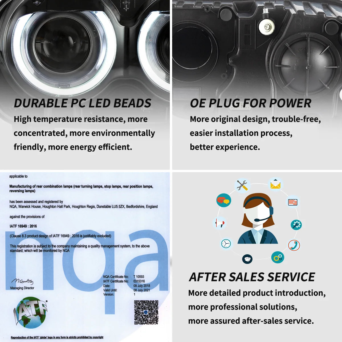 | Certifications | DOT/SAE (FMVSS 108), E-mark (ECE), CCC; manufactured under IATF 16949 & ISO 9001 |