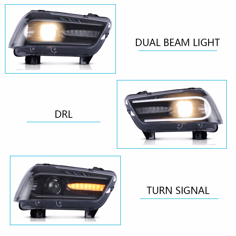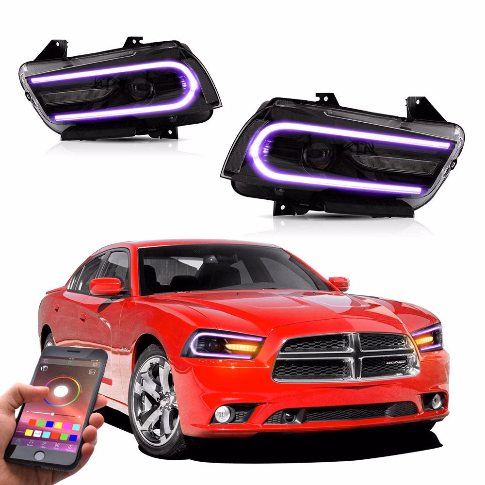 VLAND Headlights — Dodge Charger (2011–2014) • RGB DRL, Sequential Turn