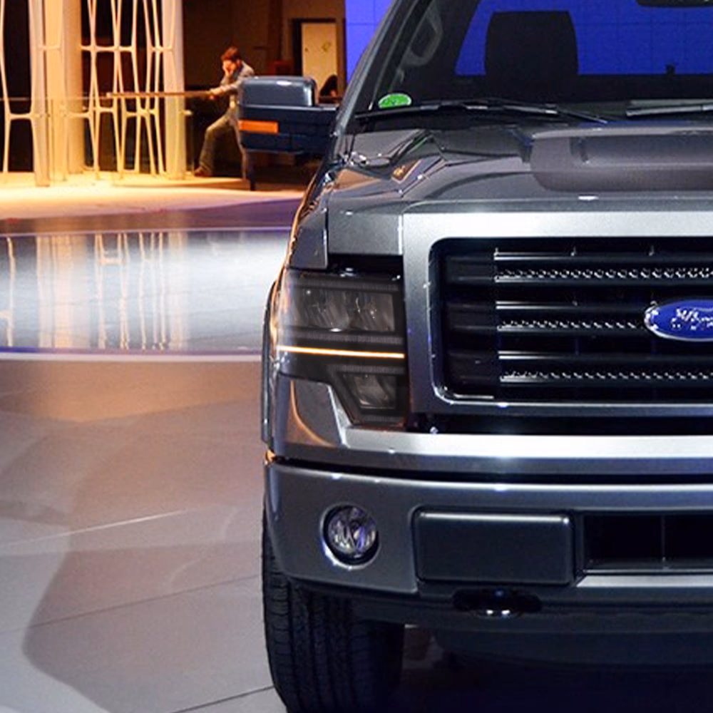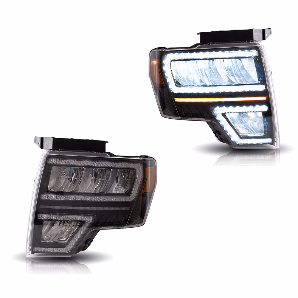 Full-LED reflector low/high beams, white DRL, amber sequential turn signals, and welcome animation. plug-and-play upgrade for halogen-equipped 12th-gen F-150.