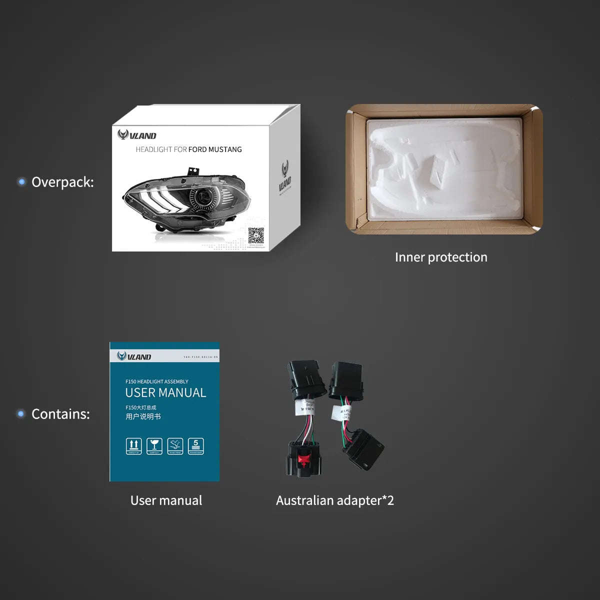 VLAND Full LED Headlights — Ford Mustang (2018–2024)