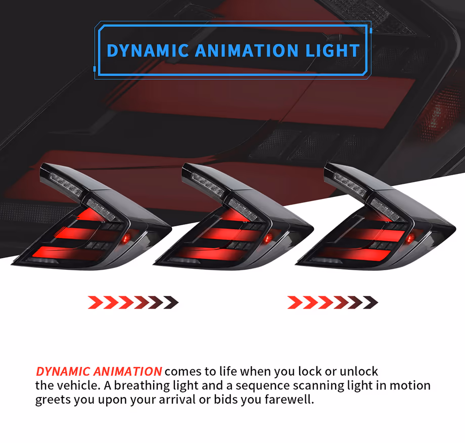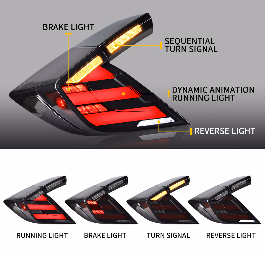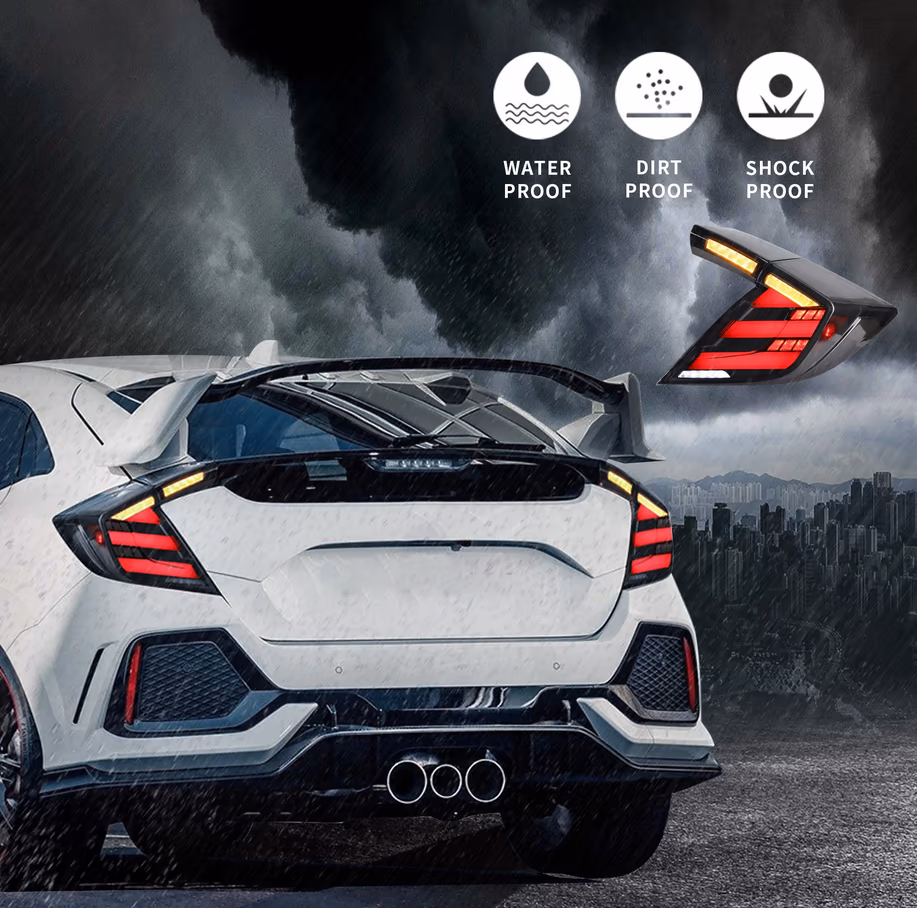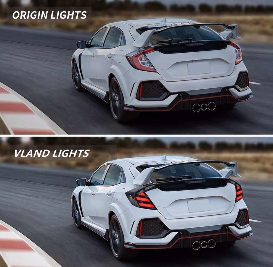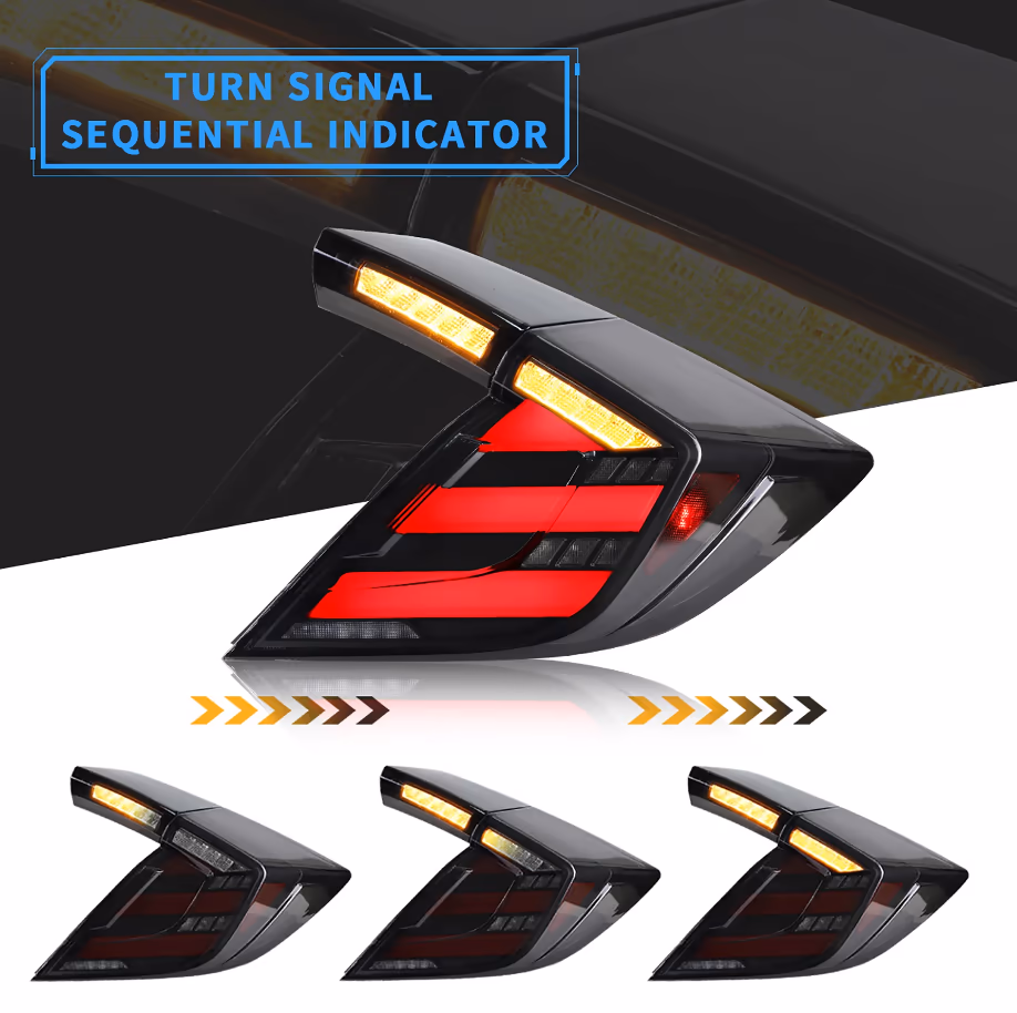 VLAND Honda Civic 10th Gen Hatchback & Type R LED Tail Lights 2016–2021 (Smoked, Sequential, E-Mark)