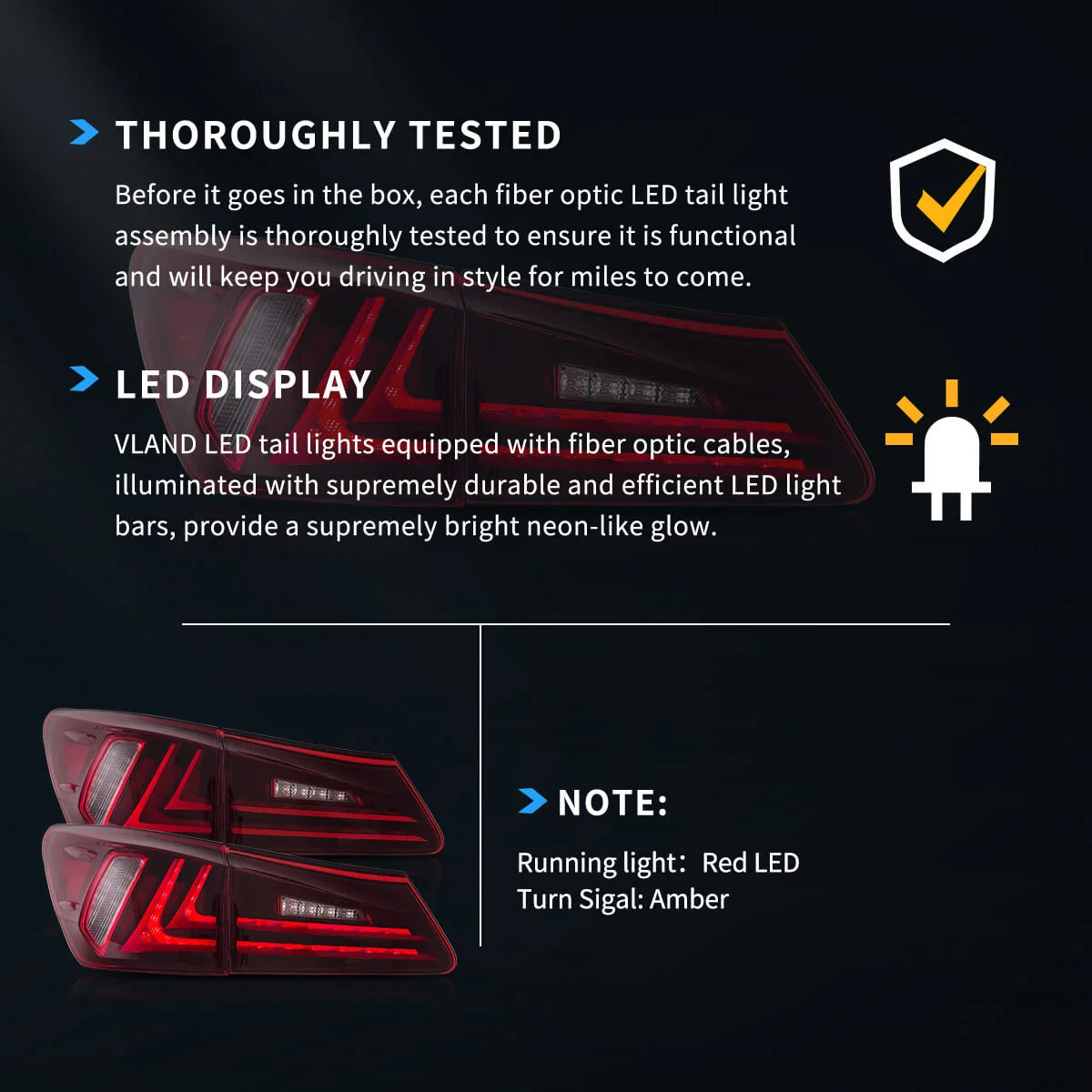 VLAND Lexus IS XE20 LED Tail Lights — IS250/IS350/IS220d (2006–2012), IS F (2008–2014) — Red Clear / Smoked