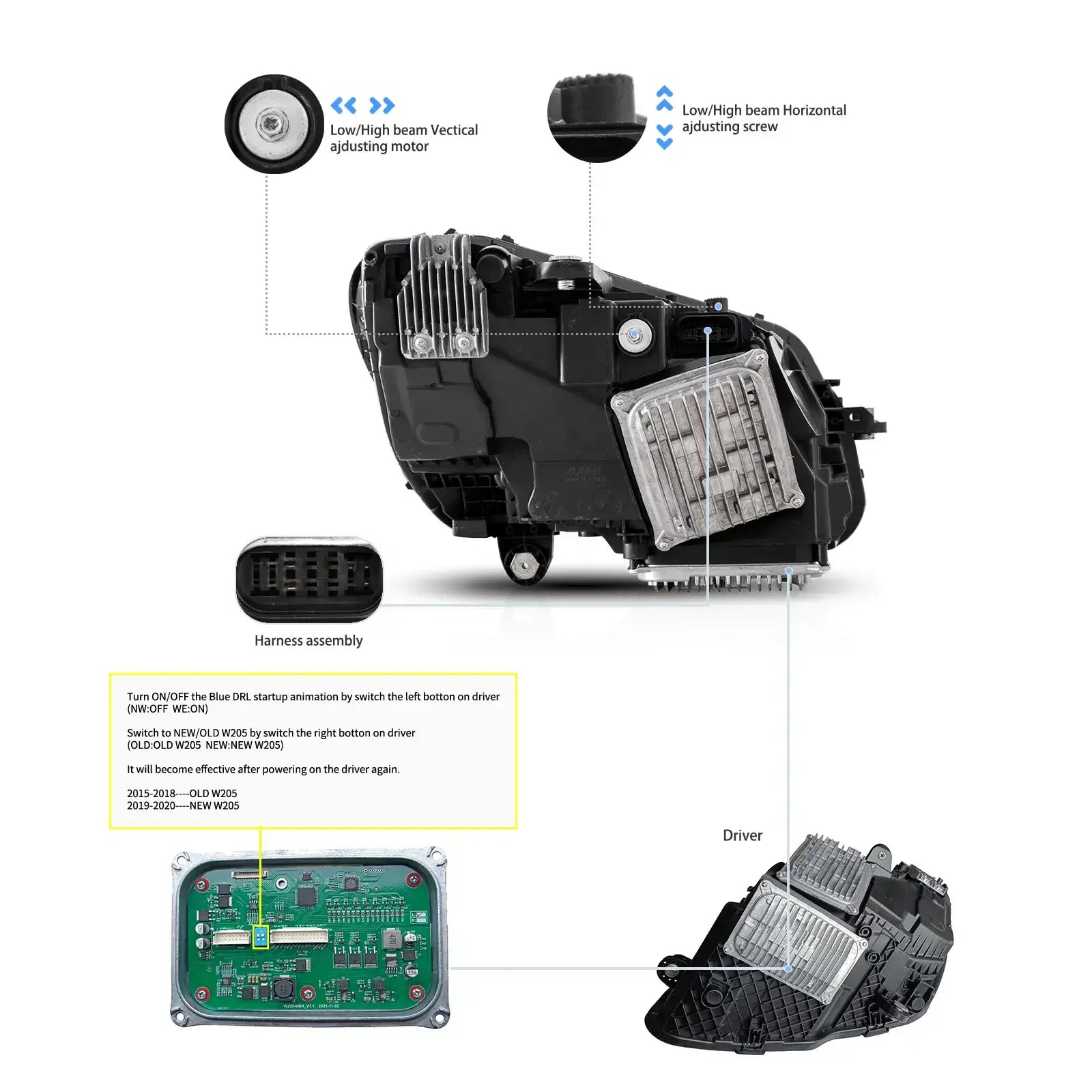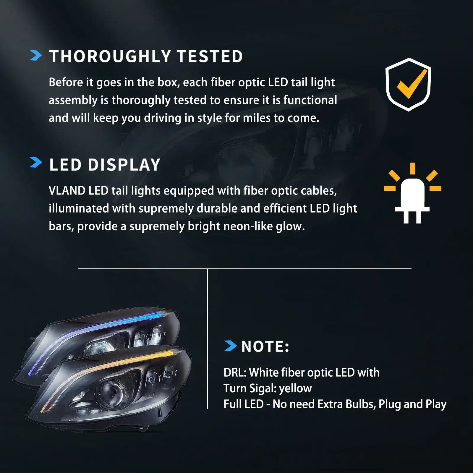 VLAND Mercedes-Benz C-Class W205 LED Headlights — Coupe 2015–2022 / Cabriolet 2016–2022 — Full LED, Sequential
