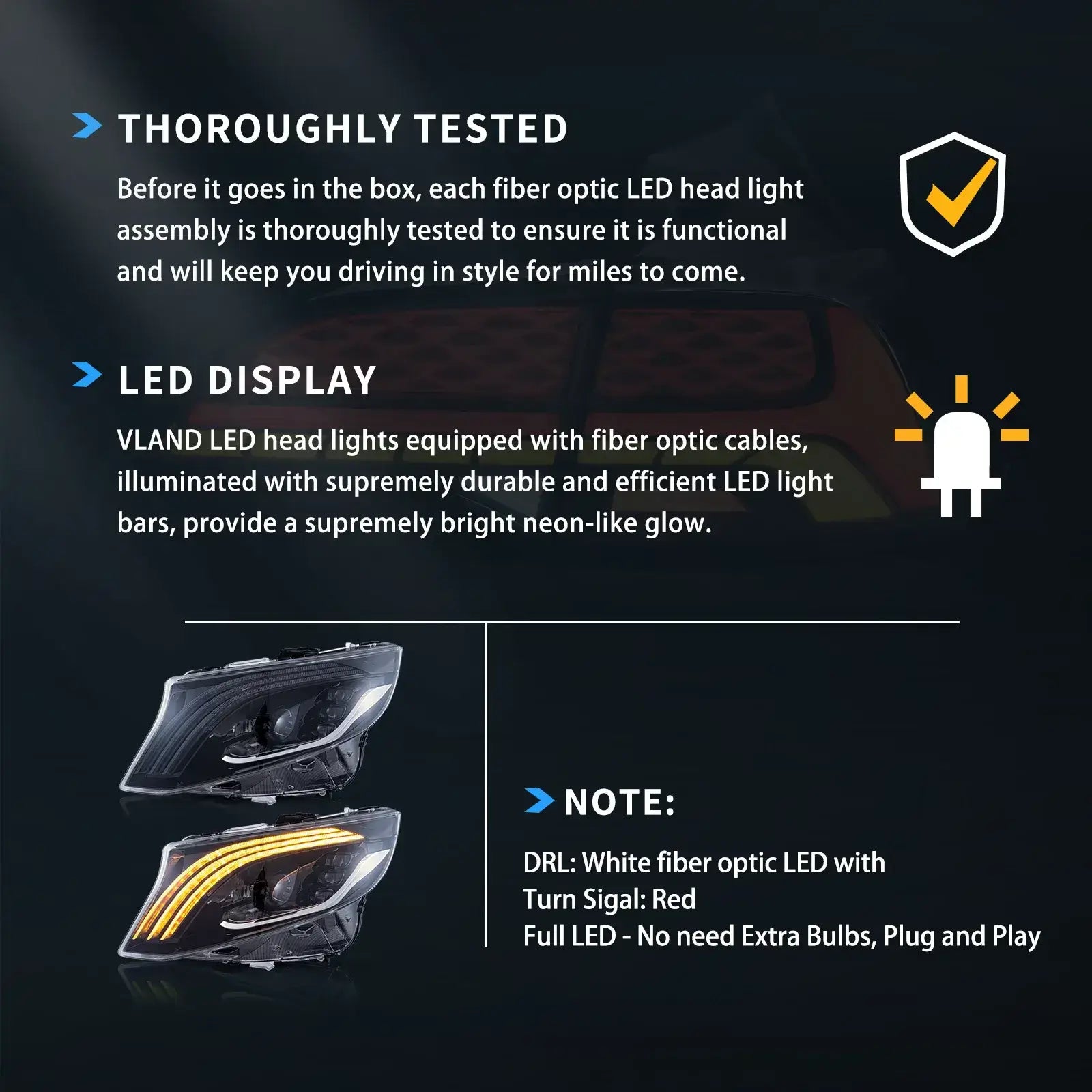 VLAND Mercedes-Benz V-Class / Vito W447 (Metris) LED Headlights — 2016–2023 — Full LED, Sequential, Plug-and-Play