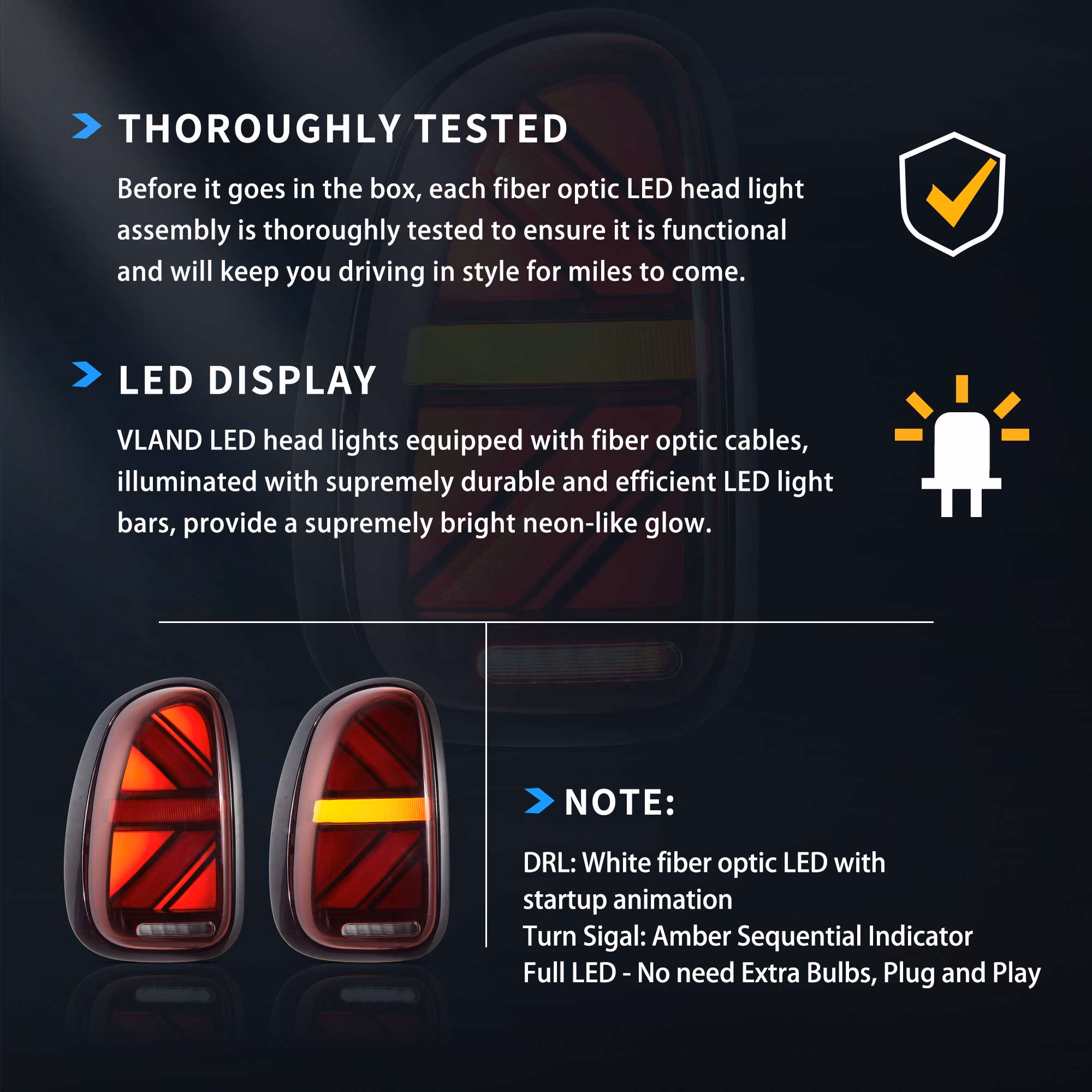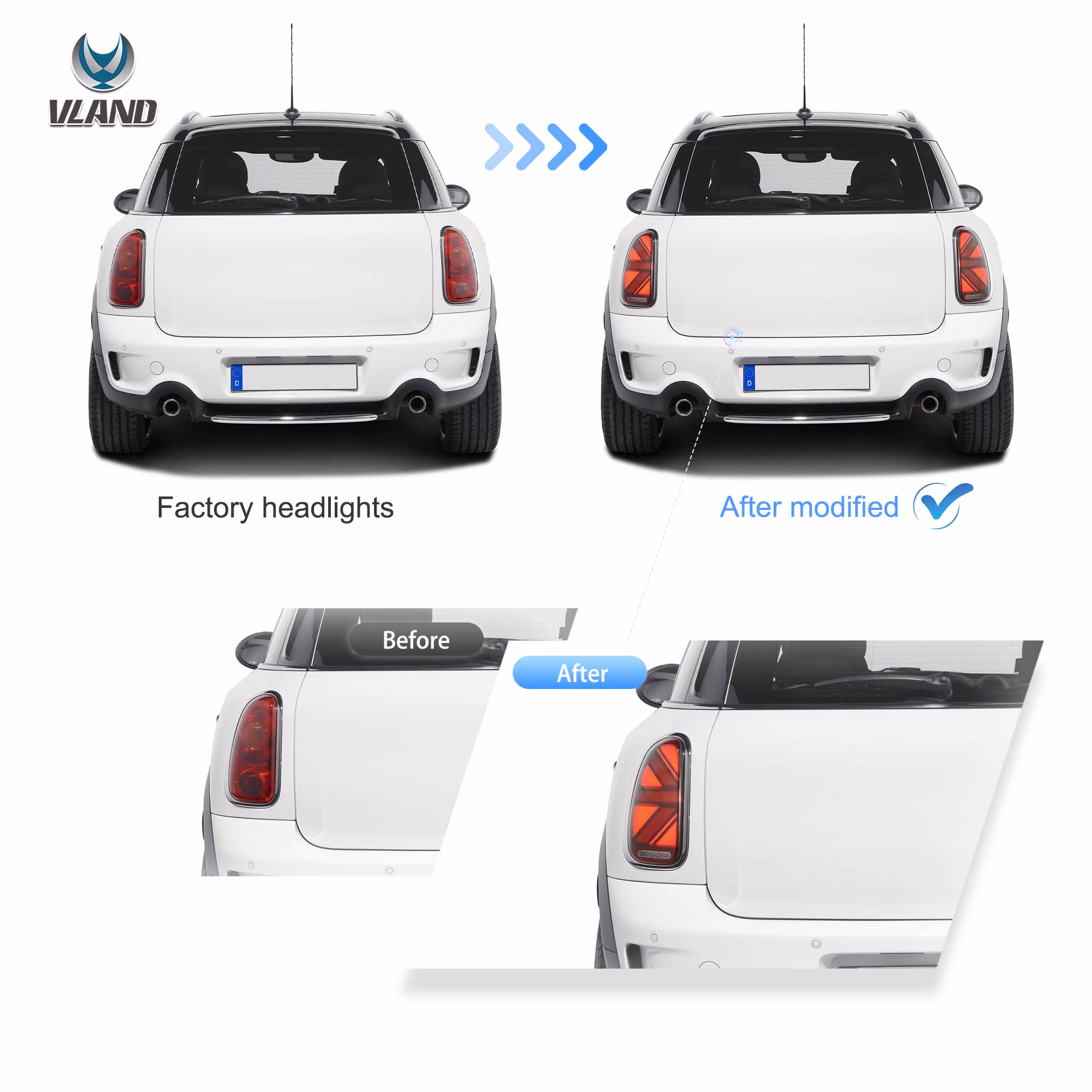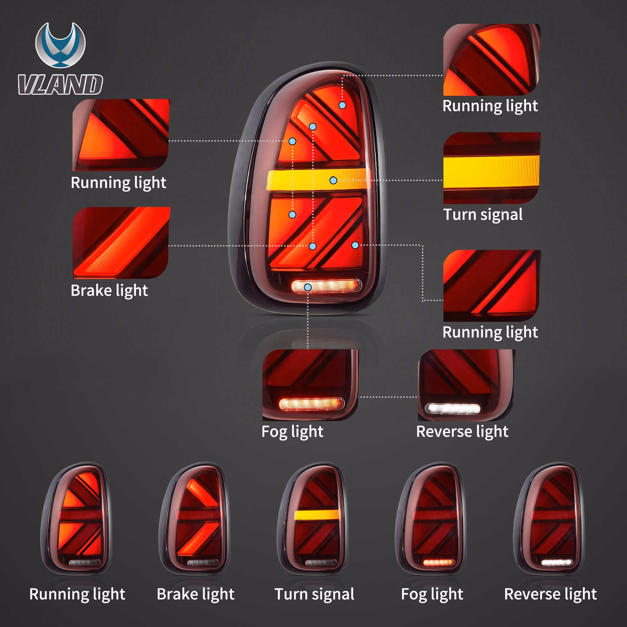 VLAND Mini Countryman R60 LED Tail Lights — 2010–2016 — Full LED Sequential (Cooper / One / S / ALL4) — Red Lens