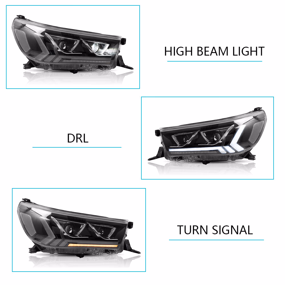 VLAND Toyota Hilux Headlights 2015–2020 (8th Gen SR5) — Full LED Projector, Sequential Turn
