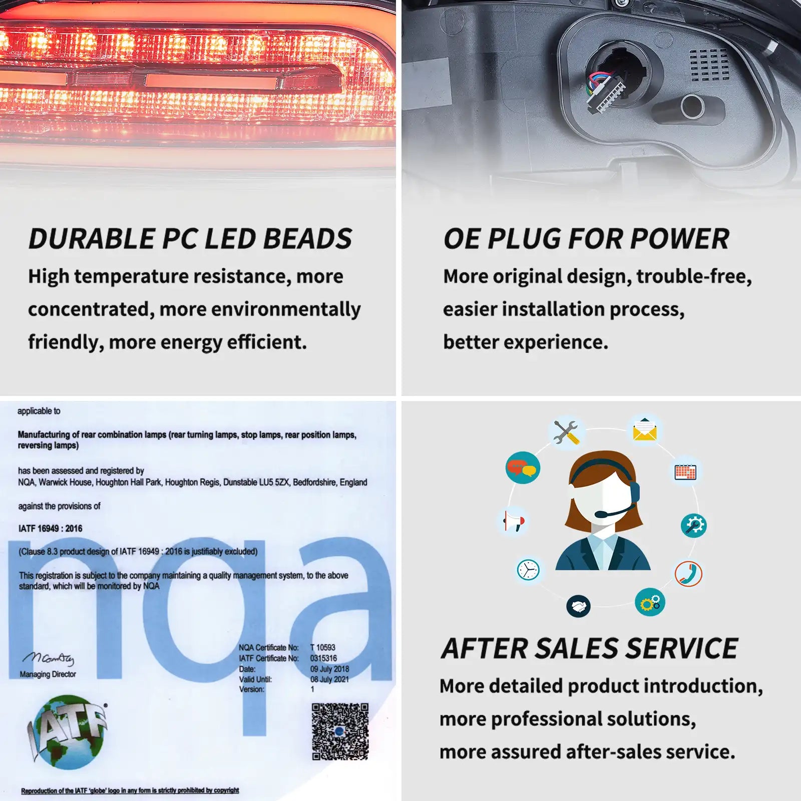 | Functions | LED running, LED brake, LED reverse, LED rear fog, LED amber sequential turn |