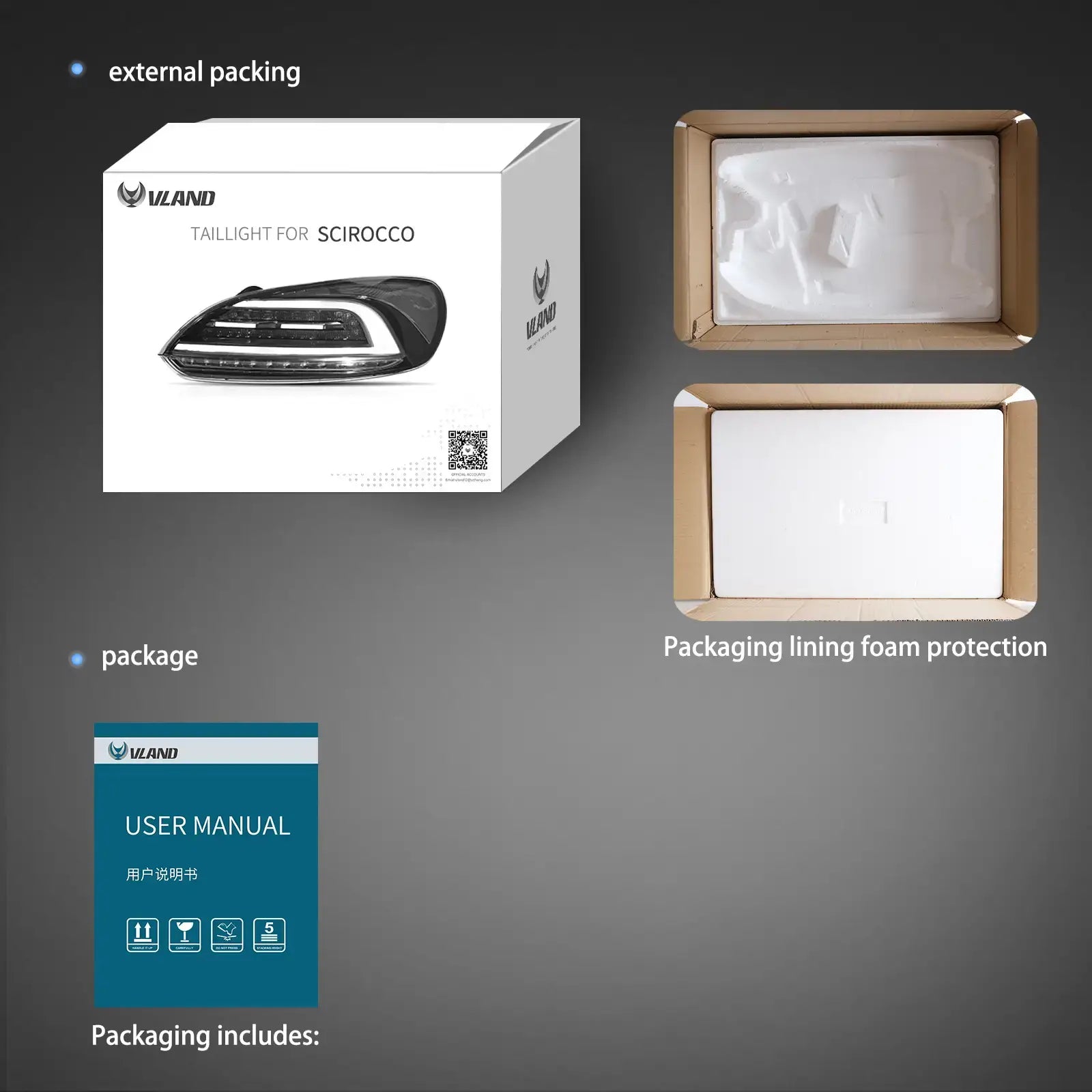VLAND Volkswagen Scirocco LED Tail Lights 2009–2014 (3rd Gen 1.4 / 2.0 / R) — Red / Smoked, Sequential (E-mark)